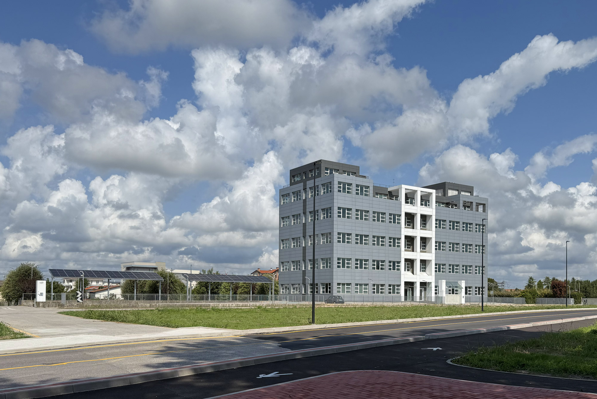 Il complesso direzionale è costituito da 6 piani fuori terra per un totale di 4400 mq oltre 164 posti auto esterni dotati di colonnine di ricarica elettriche.