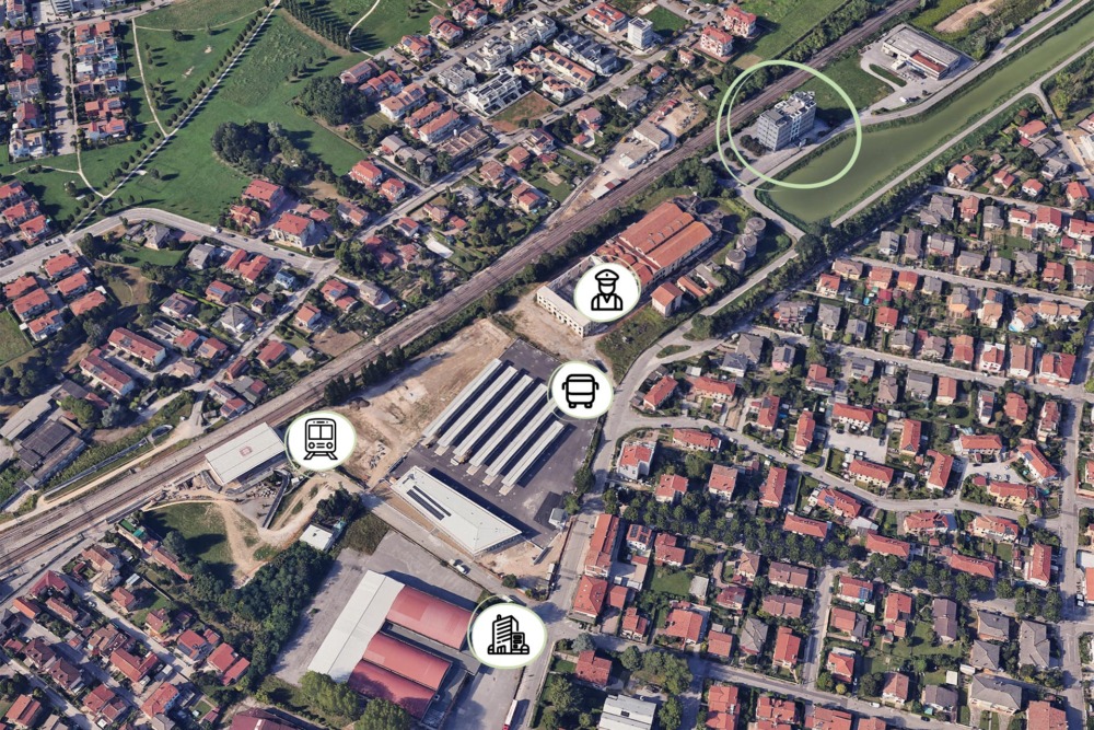 - 300 meters from the new SFMR and ATVO railway stations, with connections to Trieste (1.5 hrs), Bologna (2 hrs), and Milan (3 hrs).